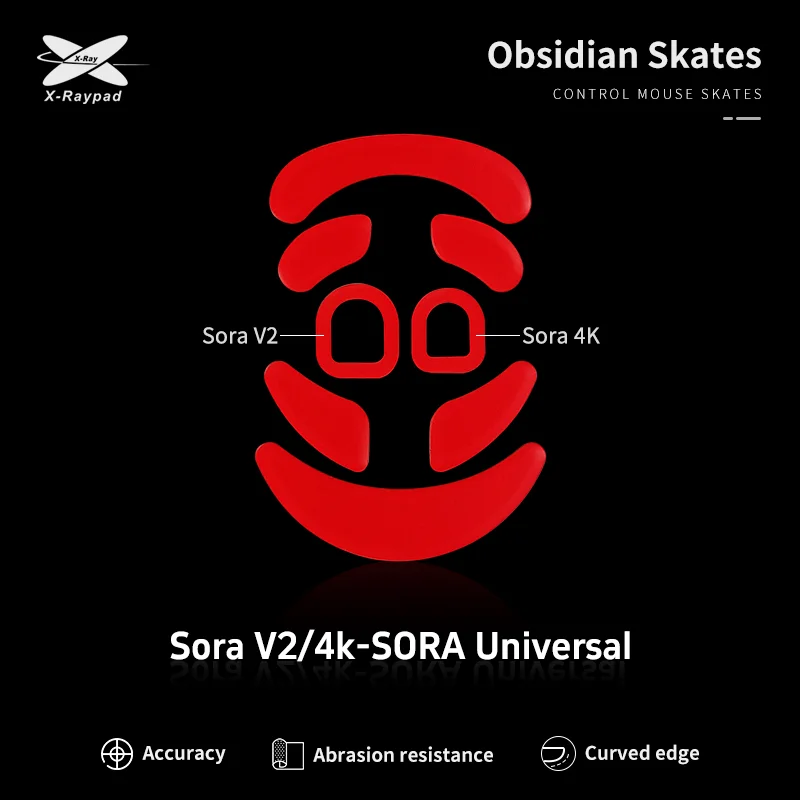 X-Raypad Obsidian Ninjutso Sora V2/4K to ślizgacze dedykowane dla myszki Ninjutso Sora V2/4K, co oznacza, że będą pasować idealnie do wcześniej wspomnianej myszki.